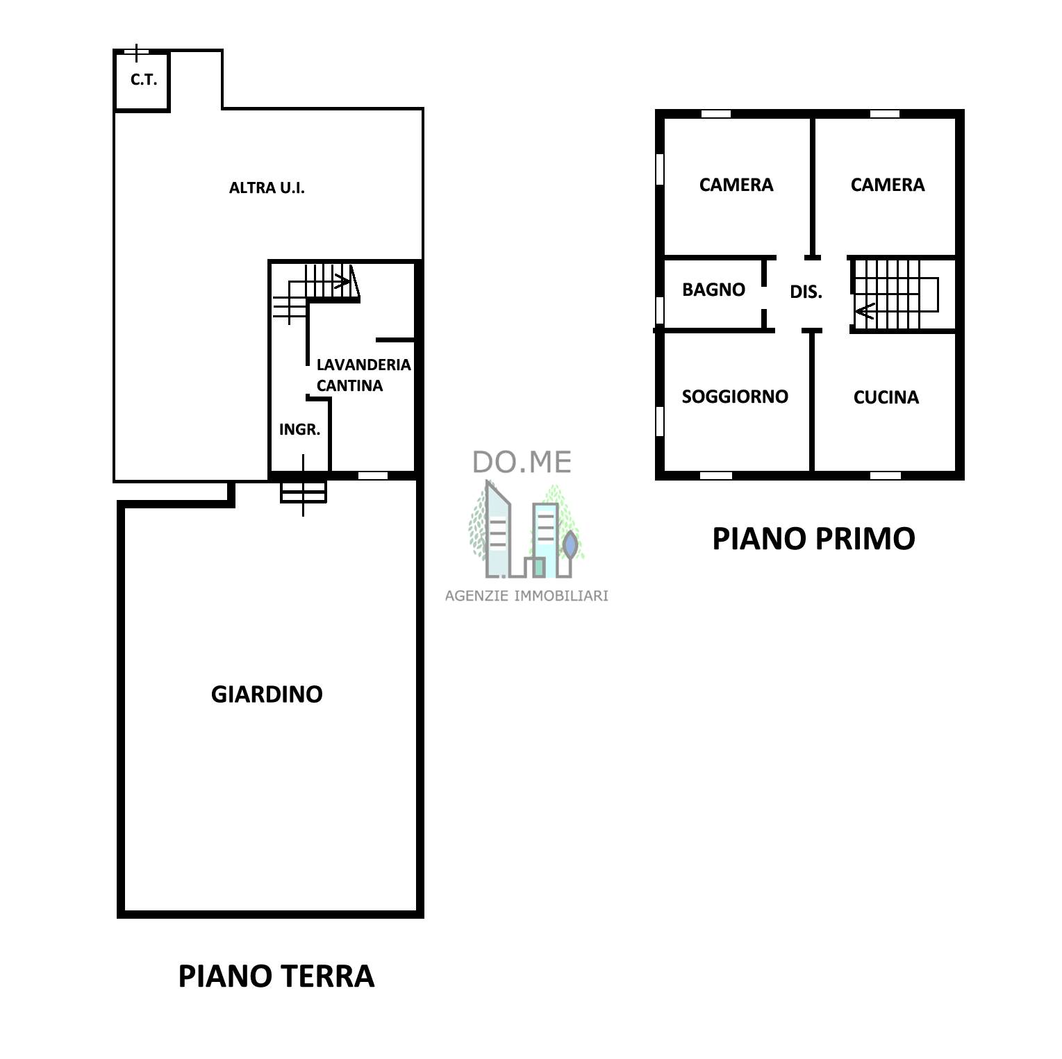 Piano Primo: ingresso, soggiorno, cucina abitabile, disimpegno, 2 camere da letto matrimoniali, entrambe dotate di cabina armadio, bagno.